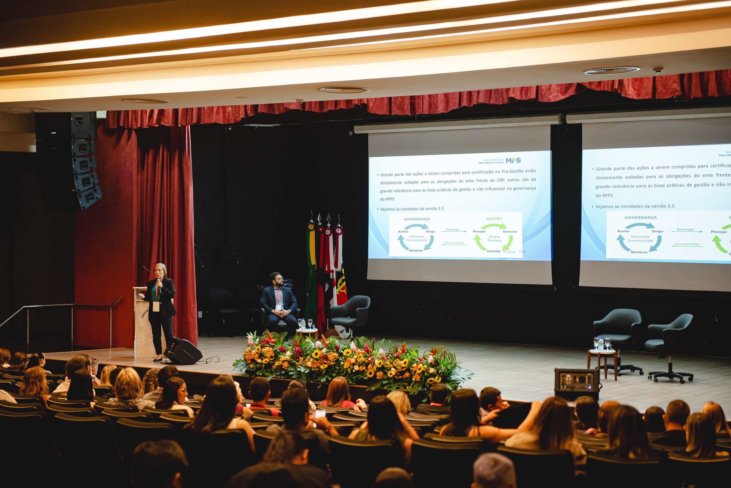 A programação começou às 8h30 com a palestra “Aspectos Relevantes da Certificação e Pró-Gestão”, ministrada por Márcia Caldas Paes, especialista da SPREV/MP, que atua na Coordenação-geral de Auditoria e Contencioso do MPS e Pró-Gestão RPPS. Márcia abordou os principais pontos relacionados à certificação e à implementação de práticas de gestão que visam à melhoria contínua dos RPPS. A coordenação da sessão garantiu uma discussão produtiva e esclarecedora para todos os presentes.