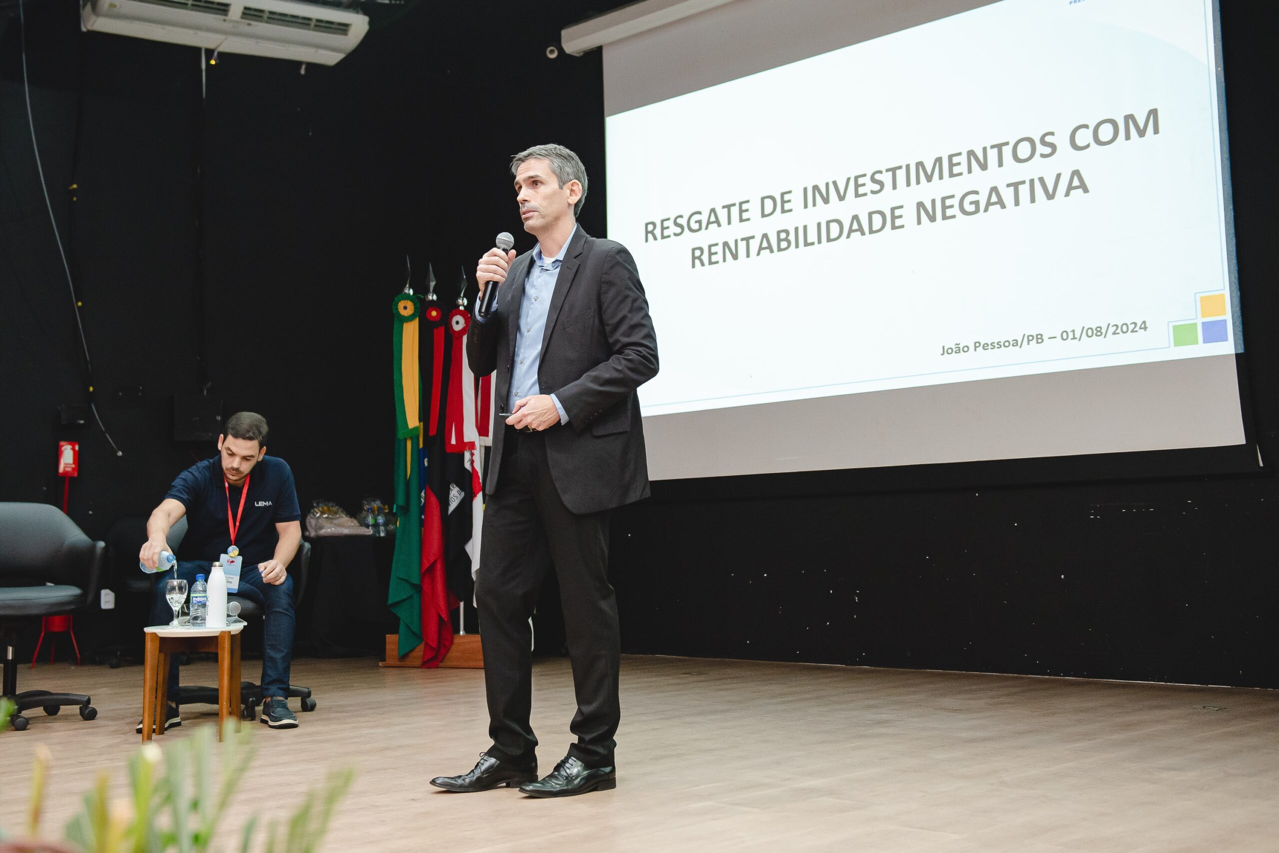 Às 14h40, o foco foi para a palestra dupla “Resgate de Investimentos com Rentabilidade Negativa” e “A Atuação de Conselhos Dinâmicos, Estratégicos e Colaborativos com a Gestão de Investimentos do RPPS”, com Gustavo Lopes Sinay Neves (Auditor da Receita Federal do Brasil) e Vitor Leitão (LEMA). Ambos exploraram a importância da atuação estratégica dos conselhos na gestão de investimentos e as dificuldades enfrentadas com investimentos de rentabilidade negativa.