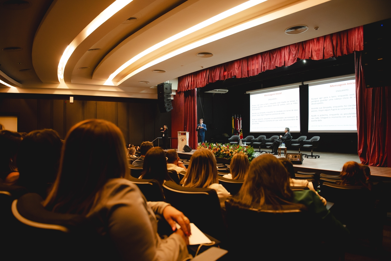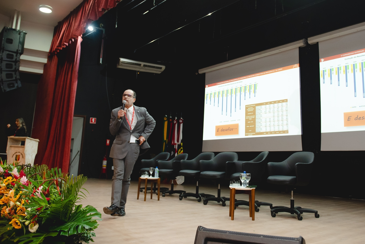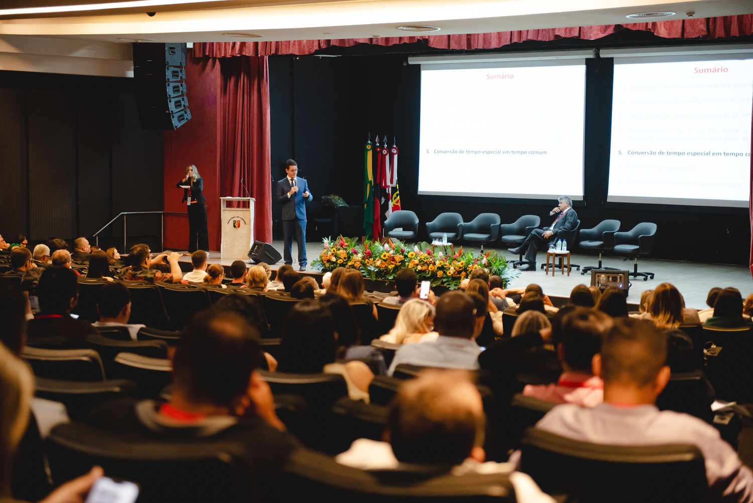 O ponto alto do dia foi o momento cívico de abertura, das 15h às 17h30, que contou com a presença de diversas autoridades. A mesa de abertura destacou a importância do congresso e reafirmou o compromisso com a melhoria dos regimes de previdência.