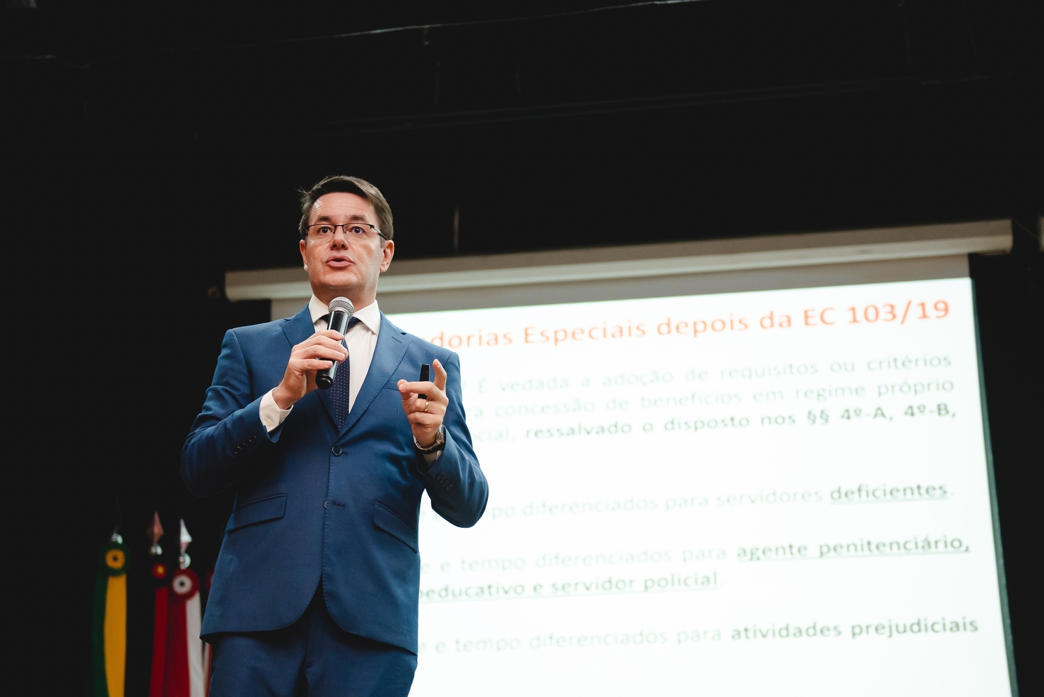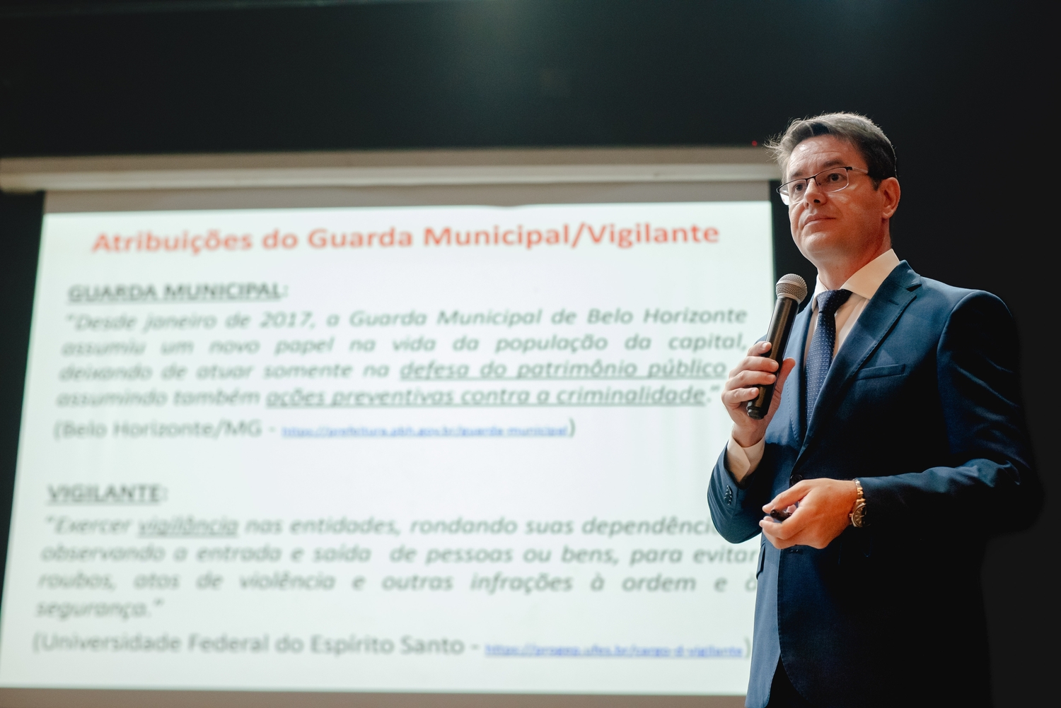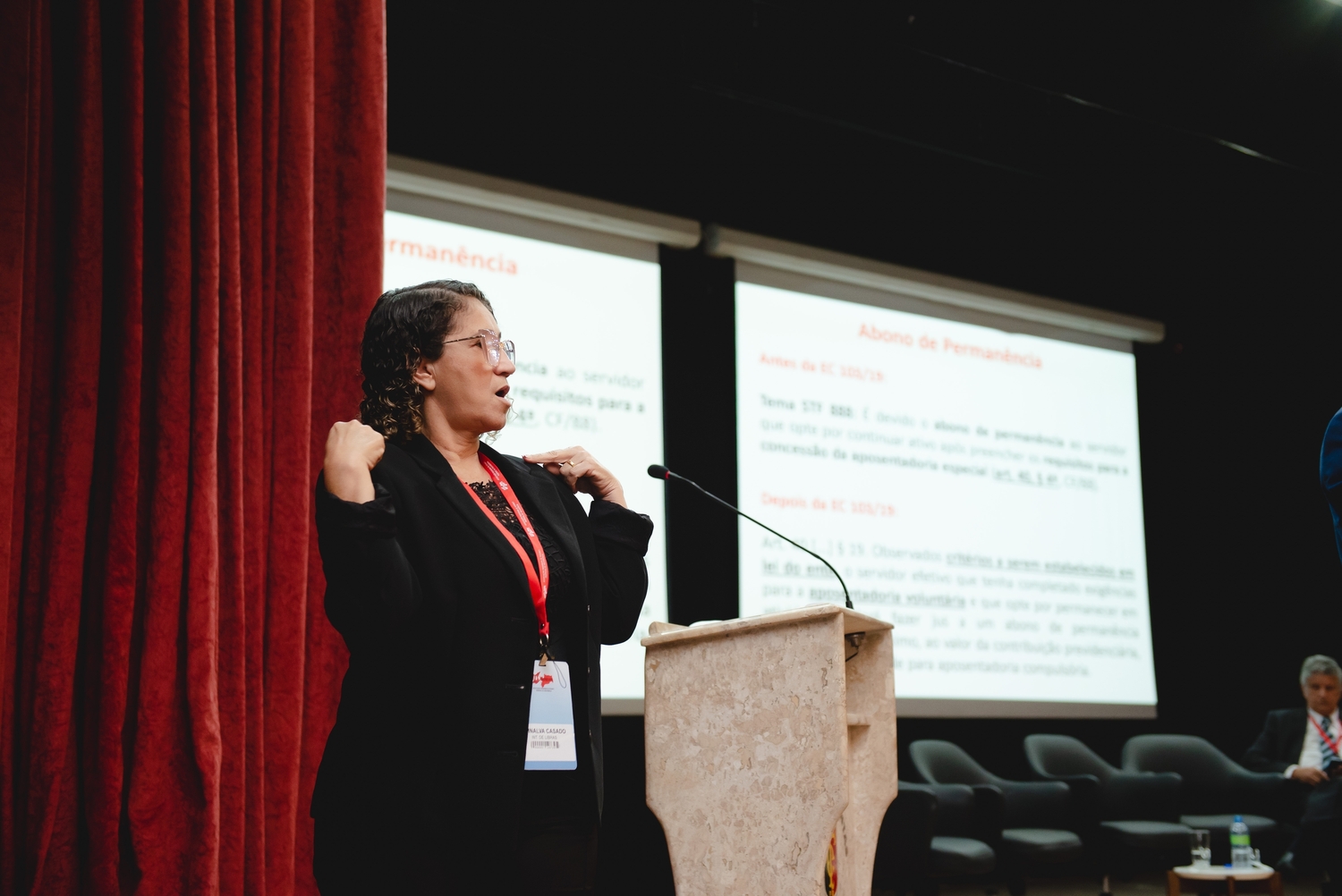 O dia começou às 12h com o credenciamento dos participantes, que foram recebidos com entusiasmo pela equipe organizadora. Às 13h30, o congresso teve sua primeira palestra sobre “Aspectos Relevantes da Aposentadoria de Guardas Municipais e/ou Vigilantes”. O palestrante Fernando Ferreira Calazans, assessor jurídico da Previdência dos Servidores de MG e superintendente de Benefícios do IPSEMG, abordou os principais desafios e soluções para a aposentadoria dessas categorias. A coordenação deste momento ficou a cargo de uma equipe especializada, garantindo a fluidez e organização das discussões.